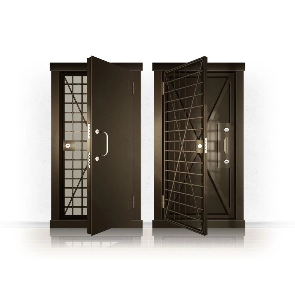 Металлические двери КХО и КХН представляют собой входные блоки, обладающие высоким уровнем взломостойкости и состоят из трех основных элементов: усиленного каркаса, сплошного металлического полотна и решетчатой двери. Дверной блок изготавливается из стального уголка 100*100 мм. Места крепления блока к стене цементируются и закрываются стальными наличниками шириной 40 мм. Крепеж заходит вглубь стены на 80 мм. В конструкции внешней створки монтируются ребра жесткости, для обшивки используется сталь толщиной не менее 3 мм. Внутренняя решетка изготавливается из прутка диаметром 16 мм. Размер ячеек решетки должен составлять не более 15 на 15 см. В точках пересечения прутья надежно приваривают друг к другу. В КХО и КХН необходимо поддерживать определенную температуру и влажность. Для этого внутреннее пространство глухой двери заполняется теплоизоляционным материалом, а по периметру двери приклеивается уплотнитель. Такие двери оборудуются замками с повышенным уровнем взломостойкости. Специализированные двери КХО и КХН в Саянске могут быть оснащены сигнализацией, в конструкции могут быть проушины для навесного замка и элементами для опечатывания. Если идет речь о двери в комнату хранения оружия, в створке оборудуется окно для выдачи оружия и спец. средств, которое накрывается стальной дверцей.